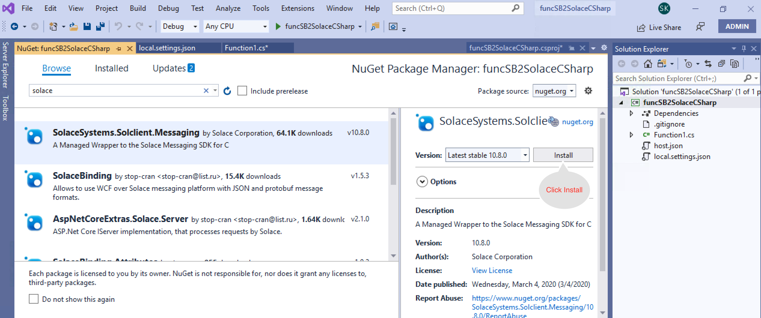 Azure allows you to use multiple programming languages and APIs. However, for this codelab, I will walk you through usage of C# using Solace C#API and REST .