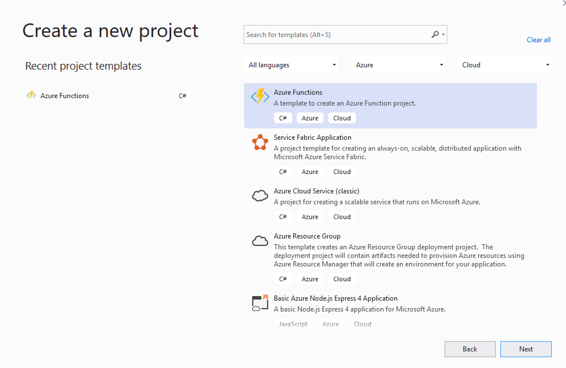 Select Azure Functions from the list and click Next