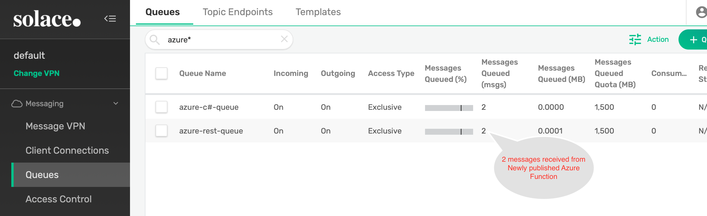 solace(configure/message-vpn/my-azure-queue )# end