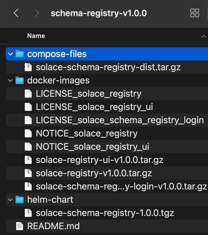 schema-registry-v1.0.0.tar.gz that contains all the necessary pieces you will need. This is available on the Solace Product Portal.NOTE: If you cannot access the Solace Product Portal, please click the Report a mistake at the bottom left of the codelab and open an issue asking for access.