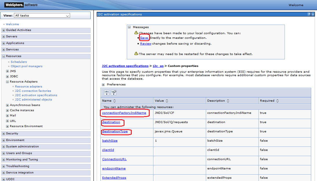 Solace_JMS_Authentication_Scheme=AUTHENTICATION_SCHEME_BASIC;Solace_JMS_SSL_TrustStore=___Path_or_URL___;Solace_JMS_SSL_TrustStorePassword=___Password___;Solace_JMS_SSL_TrustStoreFormat=jksiii. Click on the "Apply" button.iv. Click the "Save" link to commit the changes to the application serverThis section demonstrates how to configure the Solace event broker to support the transaction processing capabilities of the Solace JCA Resource Adapter. In addition, code examples are provided showing JMS message consumption and production over both types of Enterprise Java Bean transactions: Container-Managed-Transactions (CMT) and Bean-Managed-Transaction (BMT) configuration.