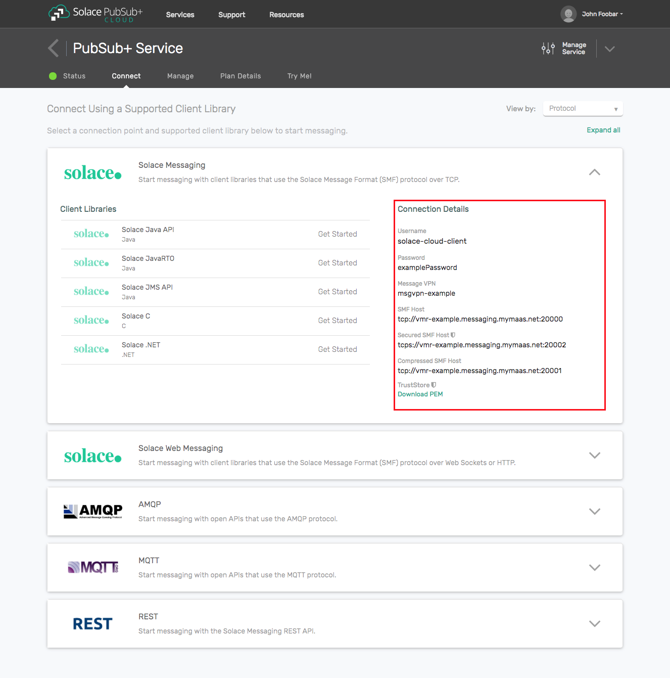 Solace Event Broker Host | Refer to section 2 - Get Solace Messaging for values | |